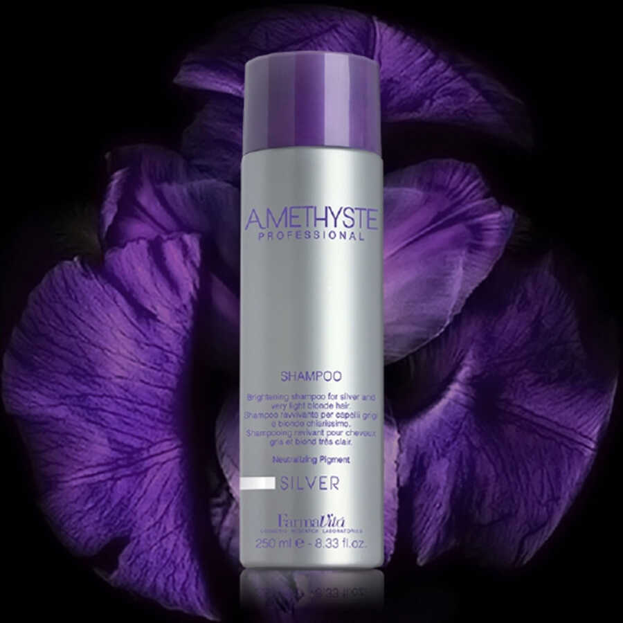 Gümüş ve çok açık sarı saçlar için parlatma şampuanı.