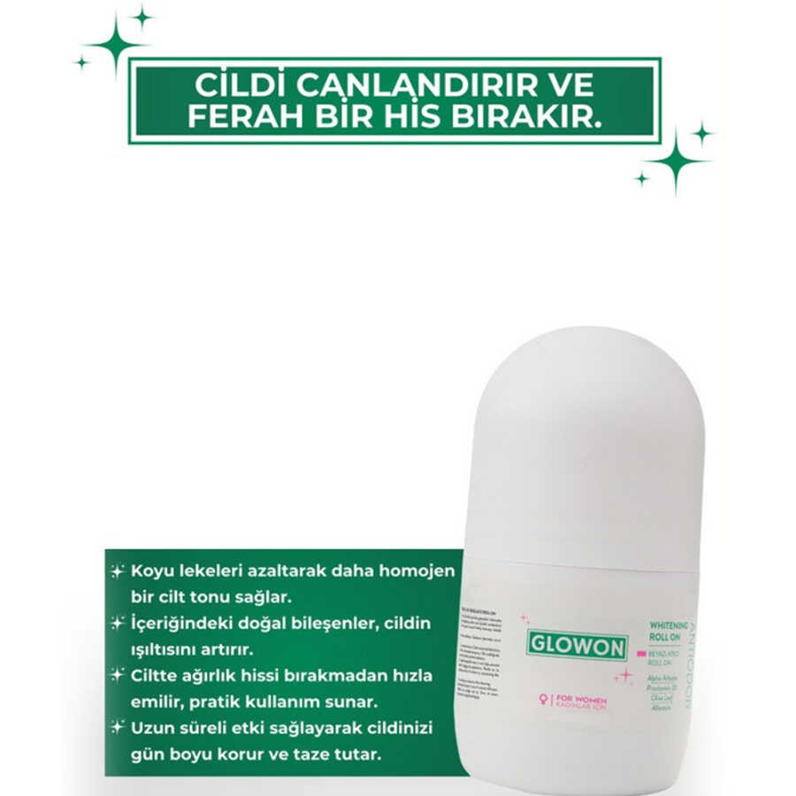 Glowon Roll On, erkekler için özel olarak geliştirilen etkili formülüyle gün boyu ferahlık ve güven sunar. Ter kokusuna karşı güçlü koruma sağlayan doğal bileşenler, ciltle mükemmel uyum gösterir ve tahrişe neden olmadan ferah bir his bırakır.