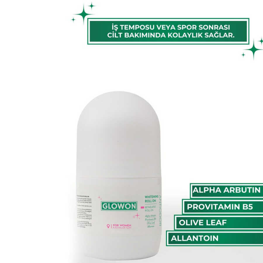 Glowon Roll On, kadınlar için özel olarak geliştirilen etkili formülüyle gün boyu ferahlık ve güven sunar. Ter kokusuna karşı güçlü koruma slağlayan doğal bileşenler, ciltle mükemmel uyum gösterir ve tahrişe neden olmadan ferah bir his bırakır.