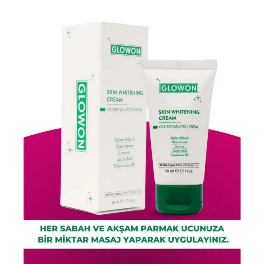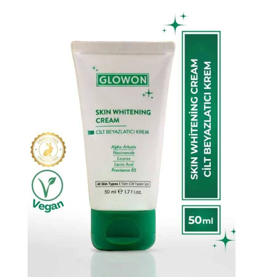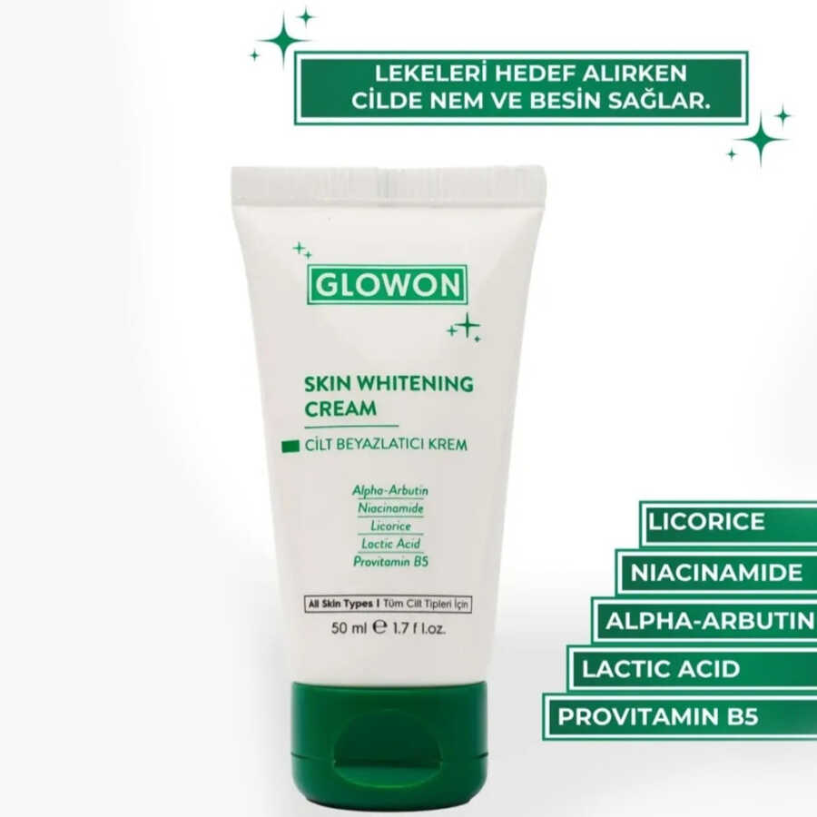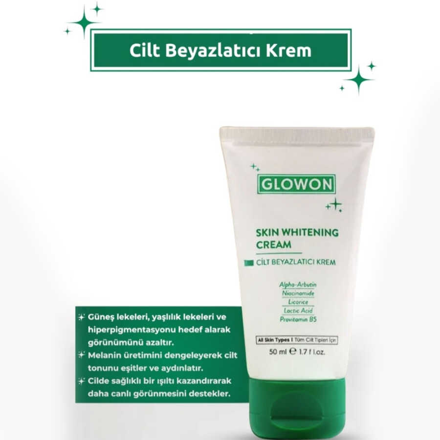 Glowon Cilt Beyazlatıcı Krem, ciltteki koyu lekelerin vehiperpigmentasyonun görünümünü azaltarak daha aydınlık ve eşit tonlu bir ciltsağlar. İçeriğindeki etkili bileşenler, cilt tonunu aydınlatarak sağlıklı birışıltı kazandırır. Arbutin, C vitamini ve pro vitamin 5 gibi cilt beyazlatıcı maddelerlezenginleştirilmiştir, bu da lekeleri hedef alırken cilde nem ve besin sağlar.Düzenli kullanımda, cilt daha canlı, sağlıklı ve ışıltılı bir görünüm kazanır.Hafif yapısı sayesinde hızla emilir ve ciltte ferah bir his bırakır, tüm cilttipleri için uygundur.