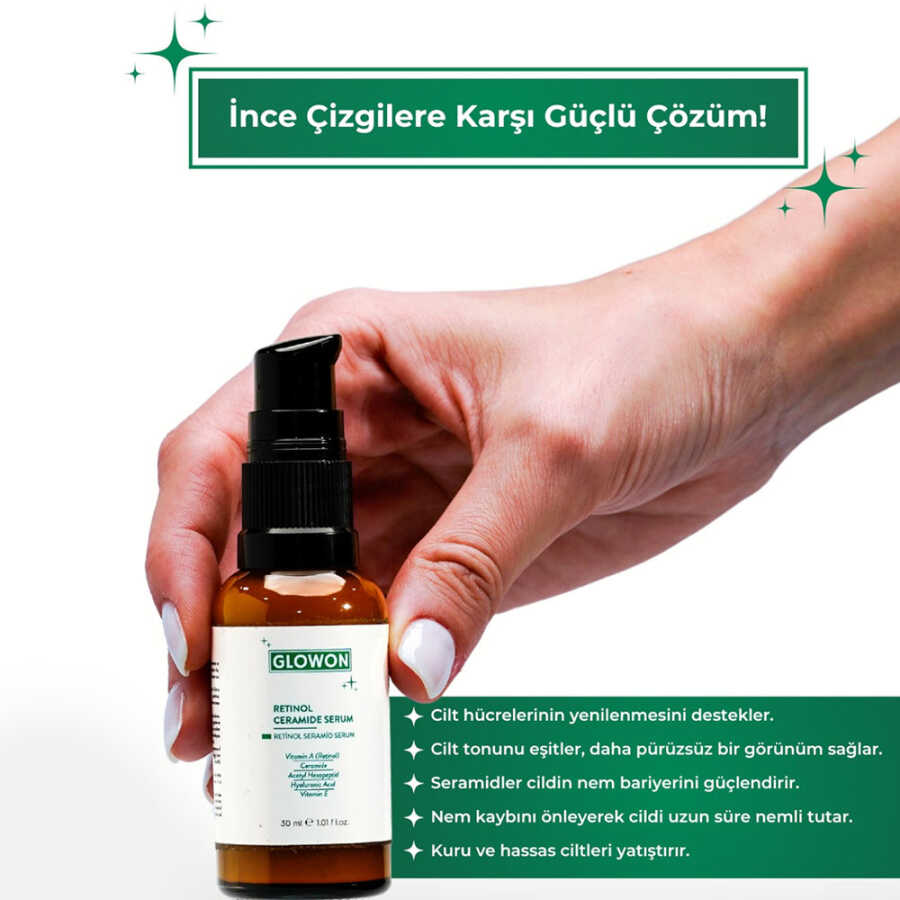 Retinol Seramid Serum, cildinizin yenilenme sürecini desteklemeye yardımcı olurken ince çizgilerin ve kırışıklıkların görünümünü azaltmayı hedefler. Güçlü seramid içeriği ile cilt bariyerinin güçlenmesine katkı sağlayan bu serum, nem kaybını önleyerek cildin daha pürüzsüz ve parlak bir görünüme kavuşmasına yardımcı olur. Düzenli kullanımda, cilt dokusu yenilenir ve elastikiyeti artar.