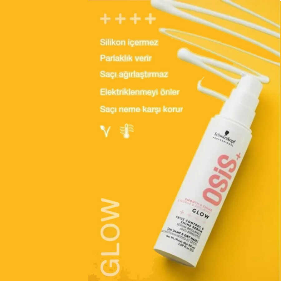 OSiS Glow, asi ve mat saçları ağırlaştırmadan elektriklenmeyi önleyen bir parlaklık serumudur.